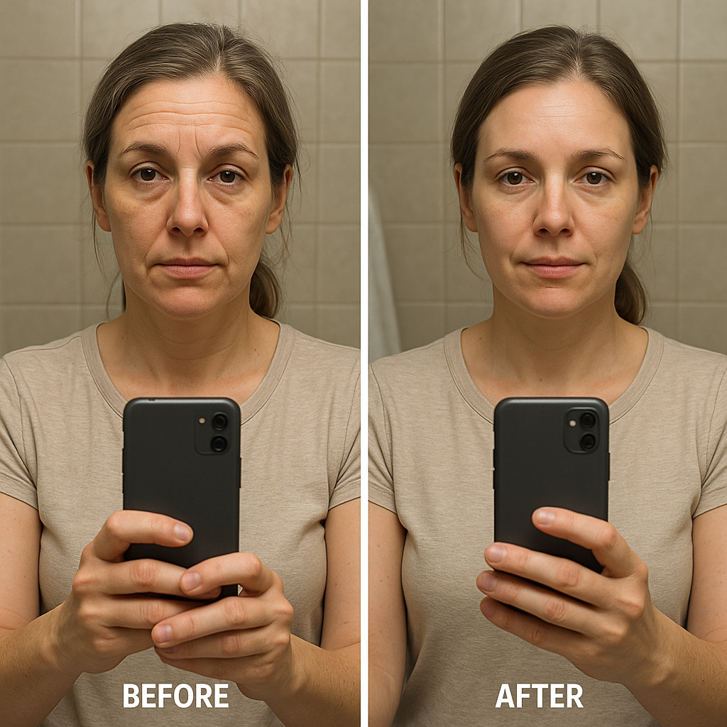 En solo 3 semanas noté mis mejillas más firmes y mis líneas de la frente casi desaparecieron. ¡Estoy fascinada!”